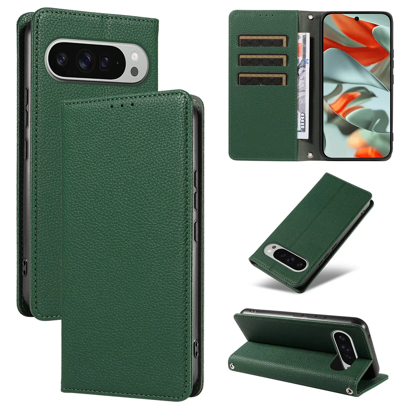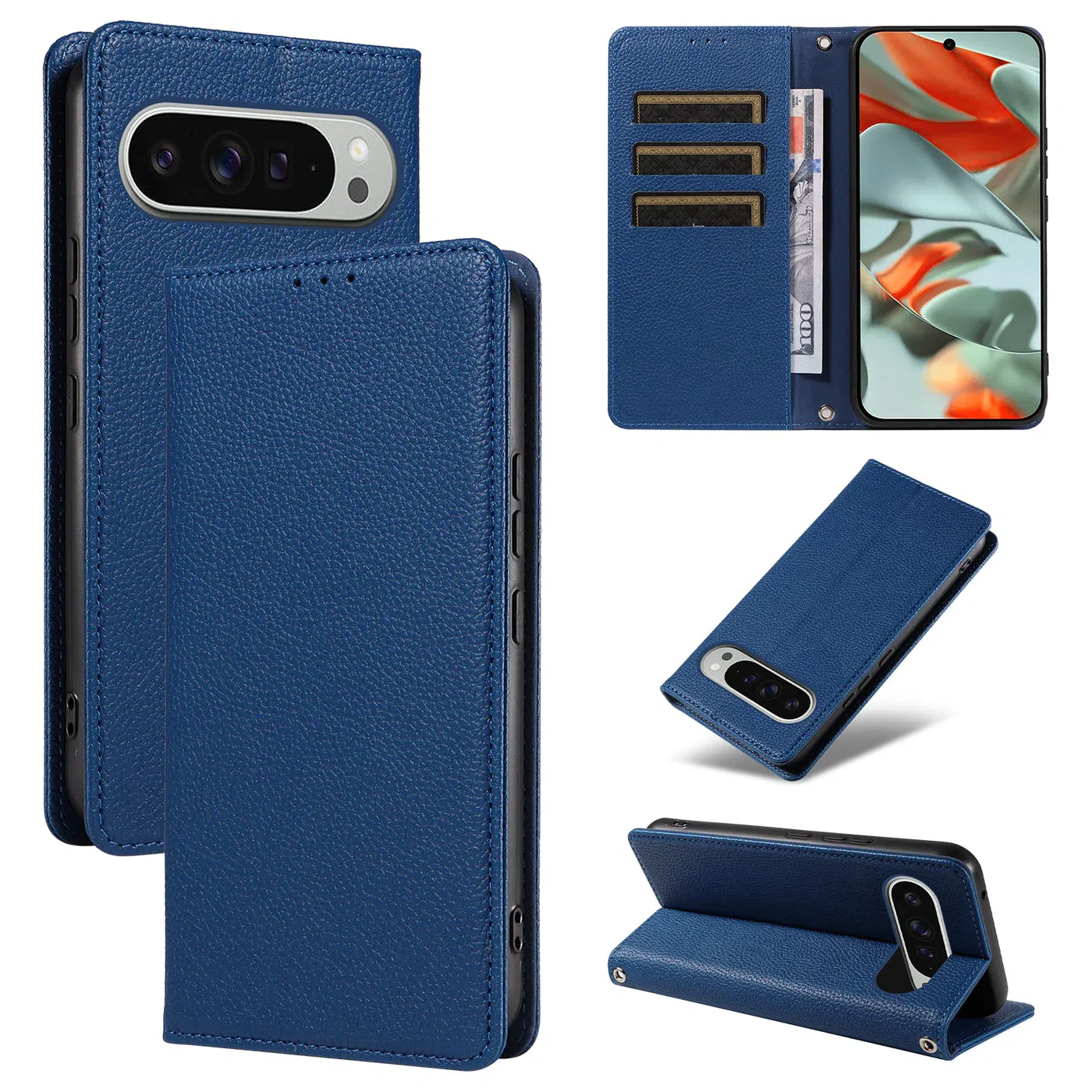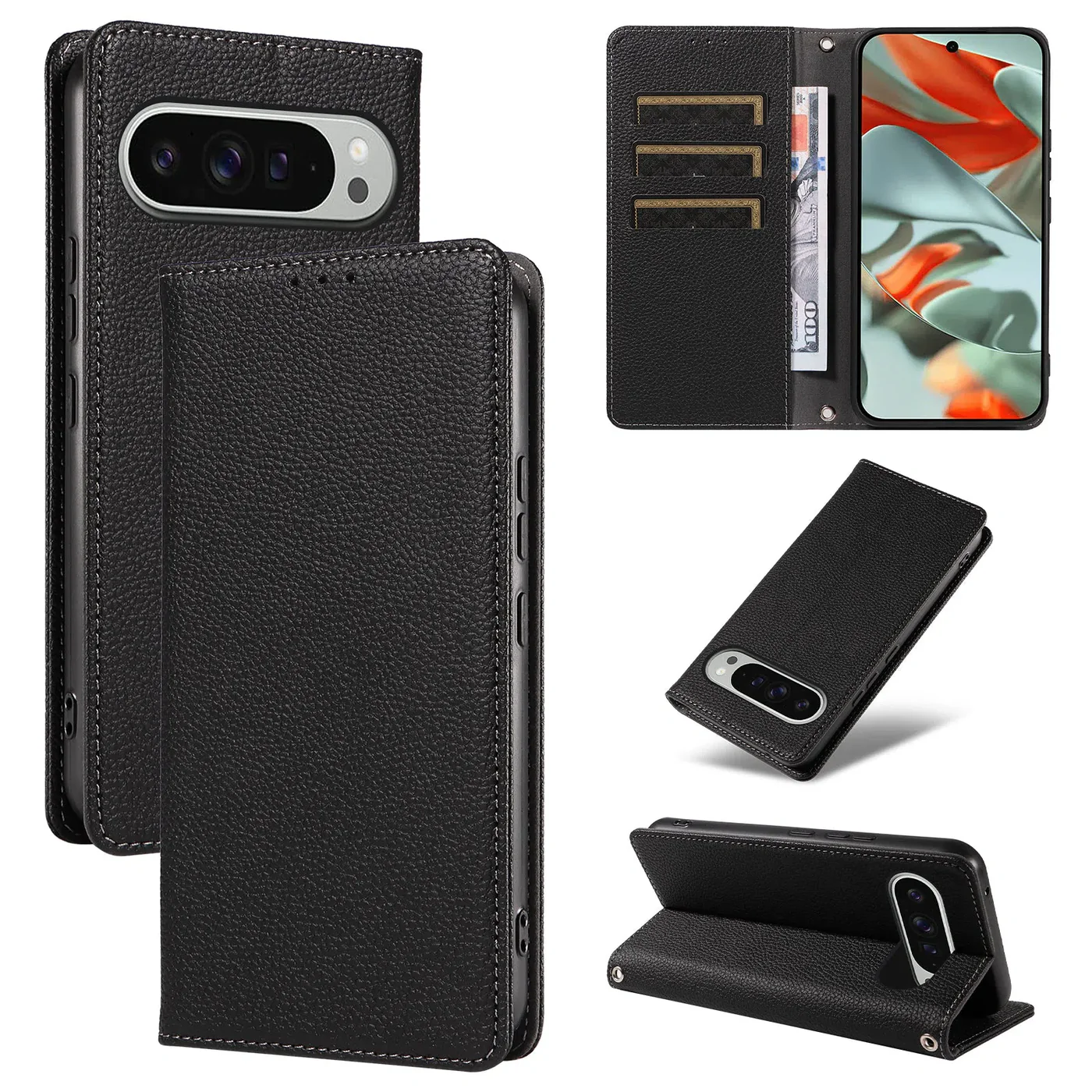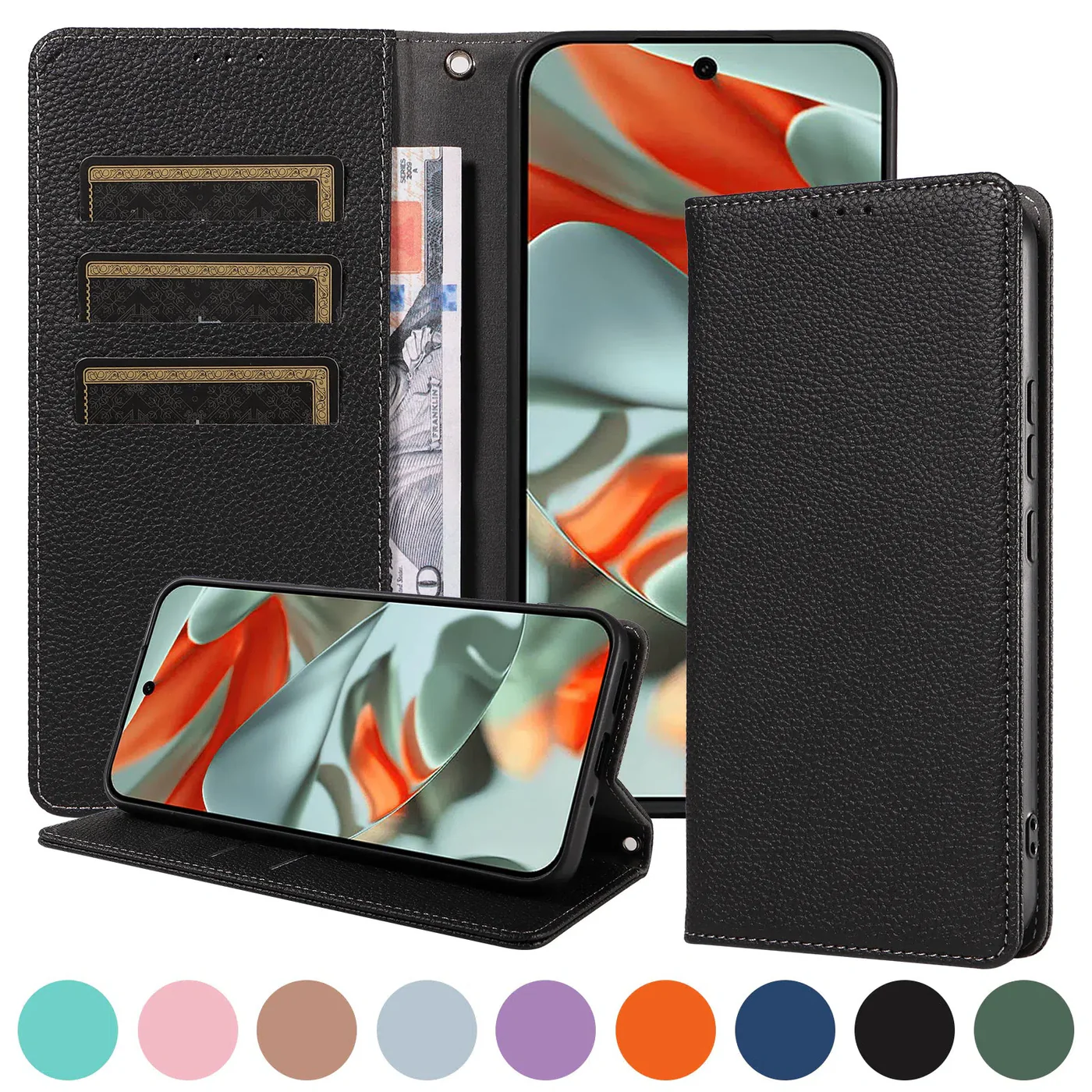 Caseles Magnetic Folio Wallet Phone Case, Premium Leather, Credit Card Holder, Magnetic Closure, Flip Kickstand Shockproof Case