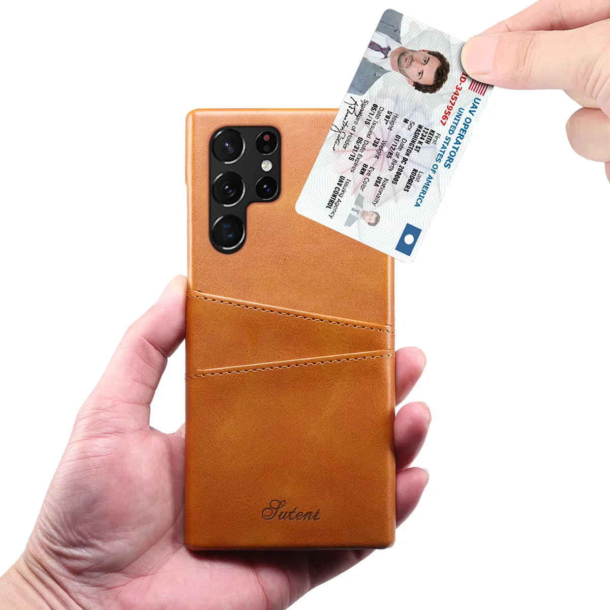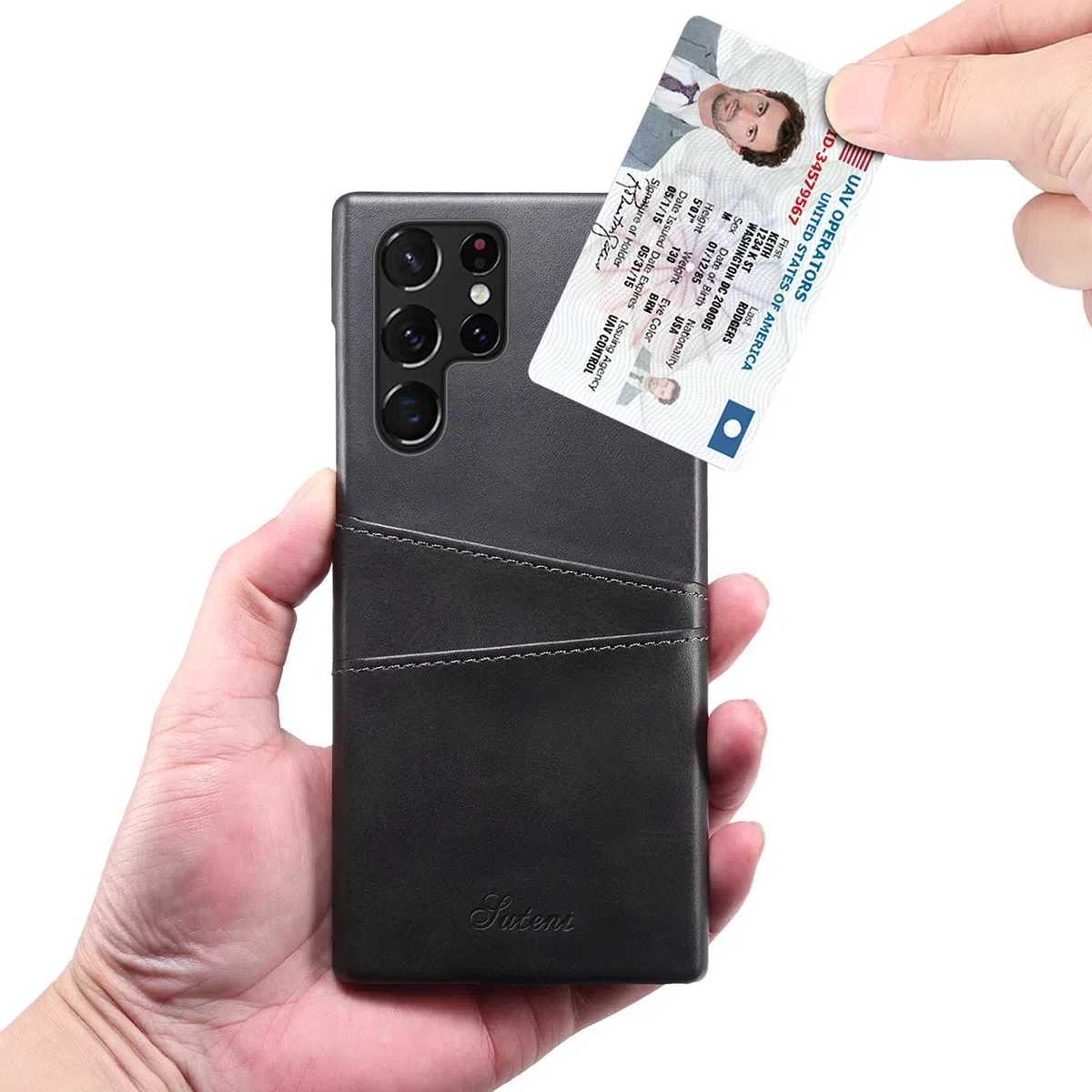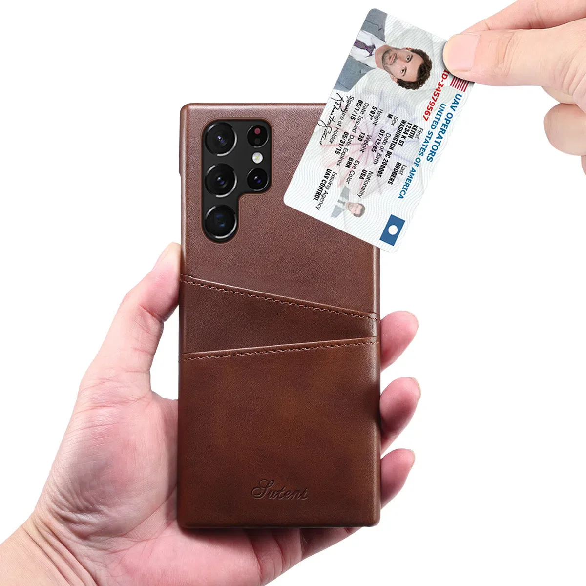 - Leather back case with card slots holder:Â 2 card / cash slots.It allows you to easily access your cards or cash conveniently. For the best performance, please only insert 1 card for each card slot.