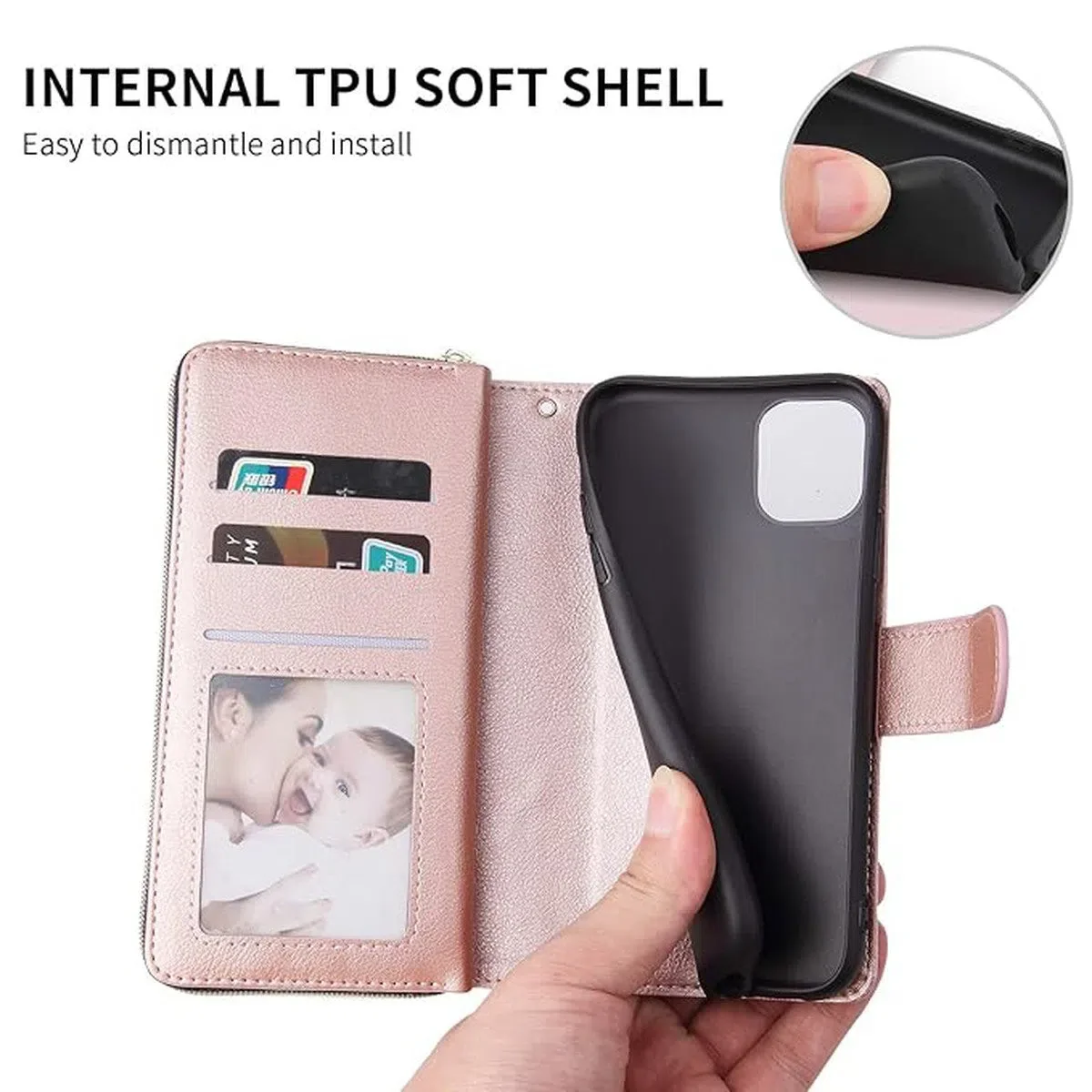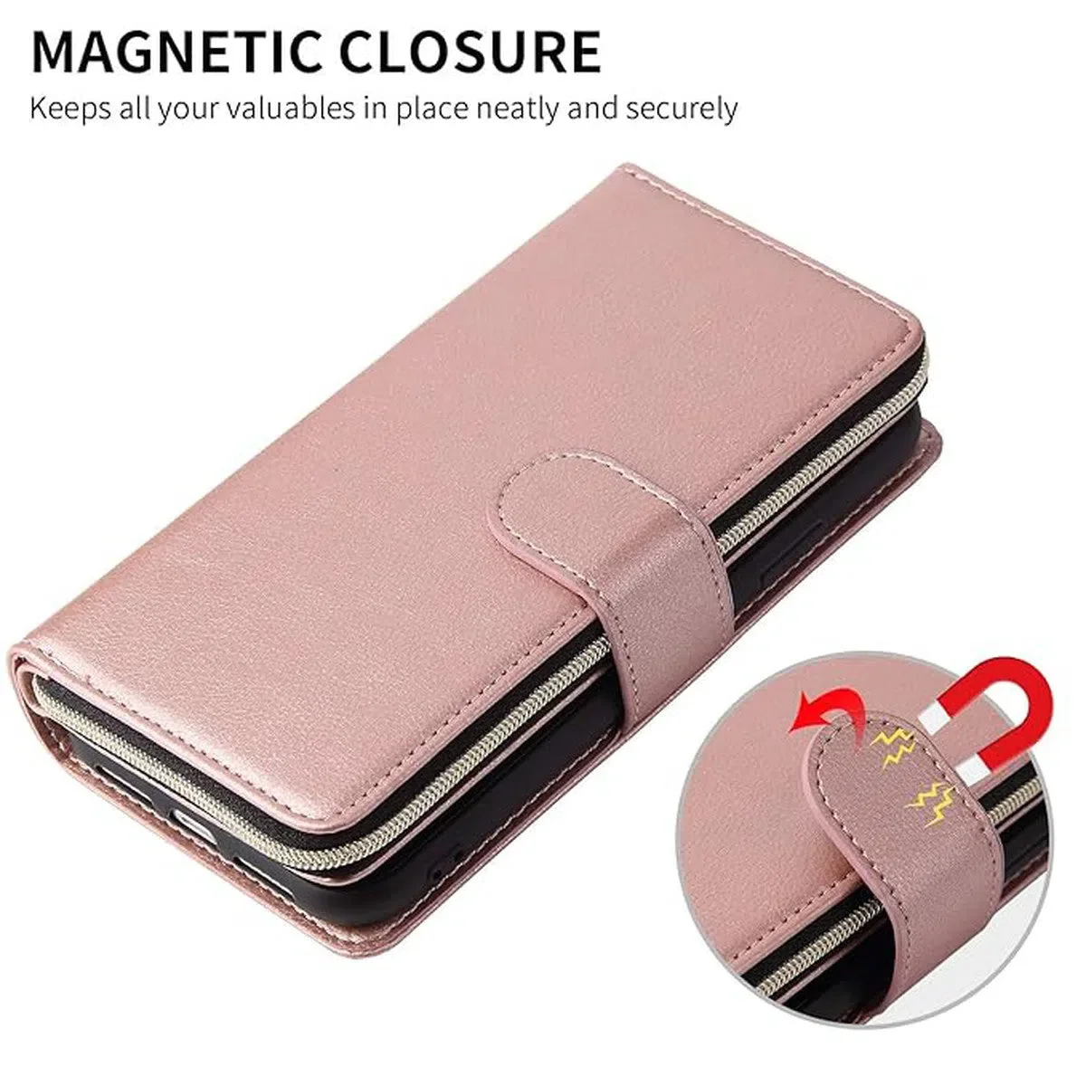 - Magnetic Detachable Case:Â The phone case can be separated from the wallet part, allowing for easy wireless charging without interference.