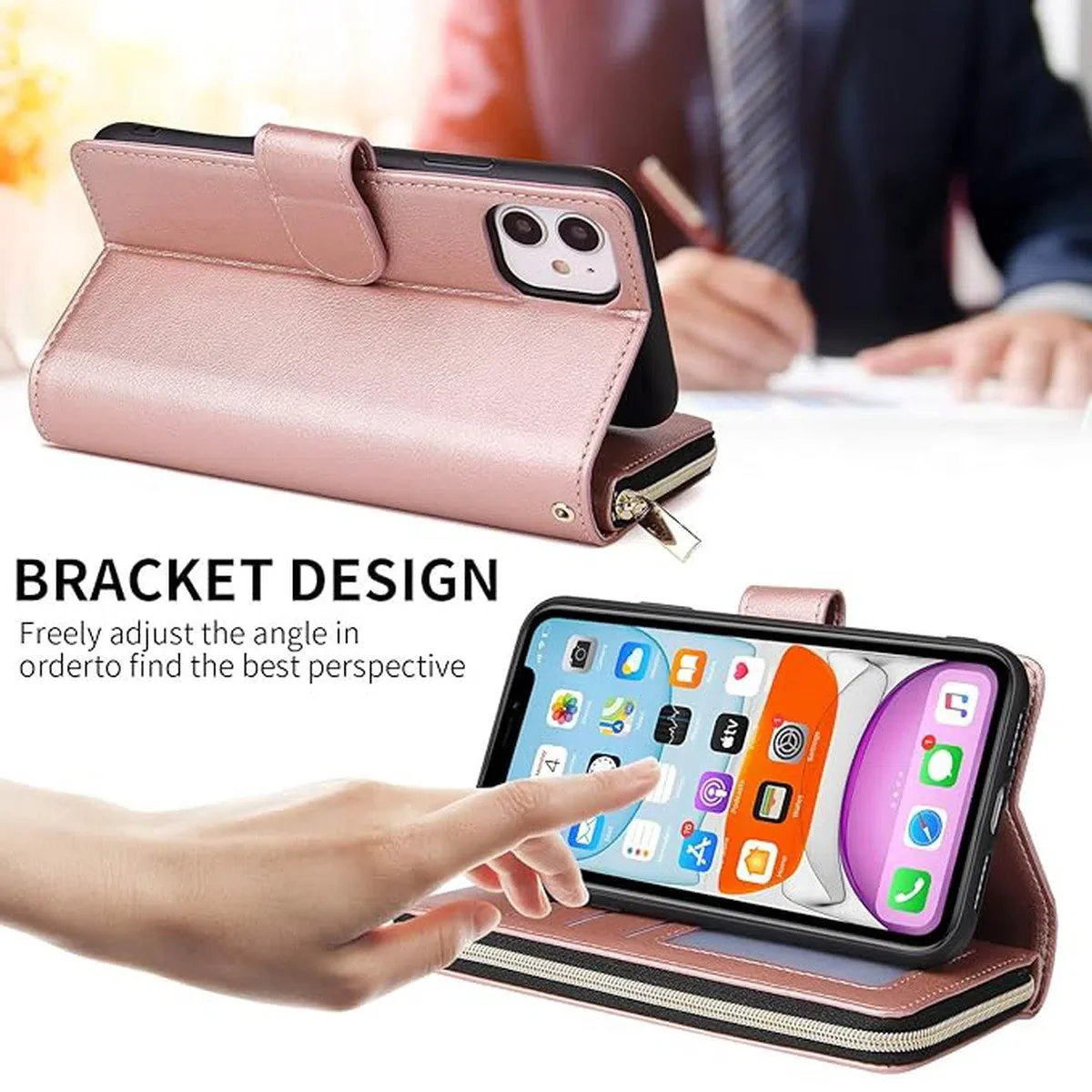 - Comprehensive Protection:Â Designed for your iPhone, this wallet phone case is made of high-quality PU leather and shock-absorbing TPU frame for ultimate protection.