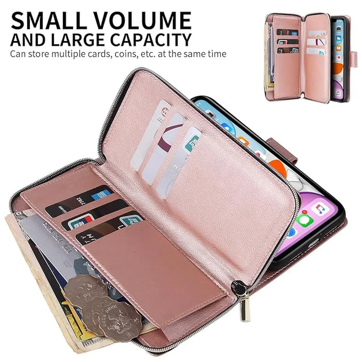 - Convenient Card Storage:Â Equipped with four card slots with RFID protection, a cash slot, and a zippered coin pouch, this case offers ample space to organize your essentials.